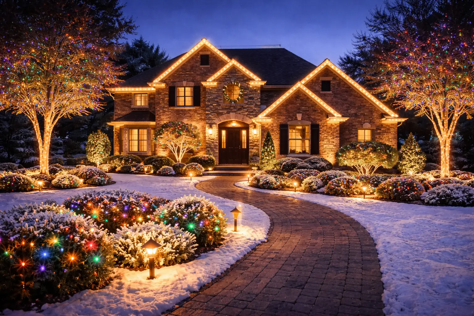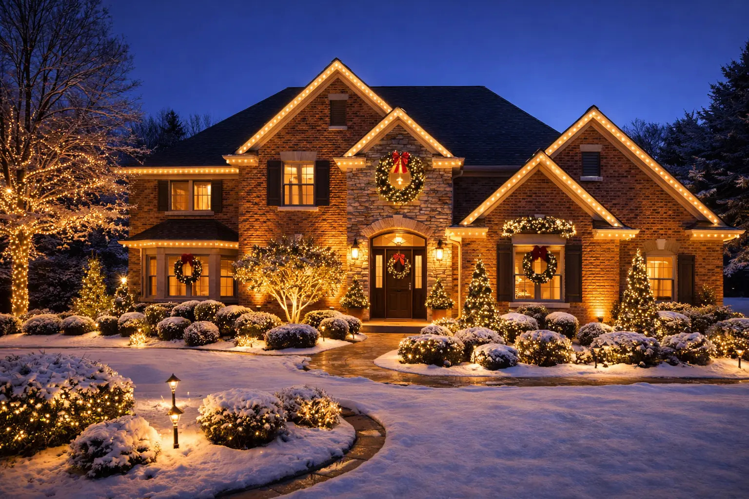 We take care of everything, including design, installation, in-season service, and post-season removal. Whether you want a classic roofline display or a more custom holiday look, our team delivers clean, balanced results that make your home stand out.